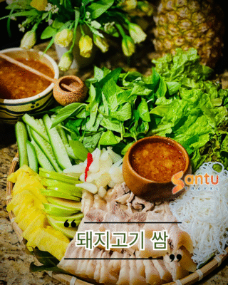 돼지고기 쌈 (Bánh tráng cuốn thịt heo): 얇은 라이스페이퍼에 촉촉하게 삶은 돼지고기와 신선한 채소를 듬뿍 넣고 돌돌 말아서 특제 소스에 찍어 먹으면 정말 환상적인 맛이에요.