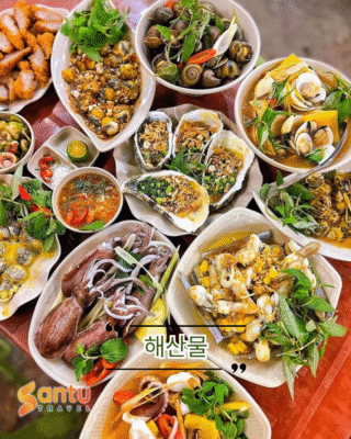해산물 (Hải sản): 다낭과 호이안은 바닷가에 위치해서 신선하고 다양한 해산물을 즐길 수 있어요. 특히 구이나 찜 요리는 꼭 드셔보세요