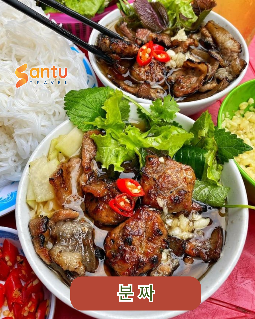 분 짜는 하노이의 특색 있는 음식으로, 숯불에 구운 돼지고기 완자와 얇게 썬 돼지고기를 차가운 느억 짬 국물에 담가 쌀국수 면, 신선한 채소와 함께 먹는 요리입니다. 달콤하면서도 짭짤한 느억 짬 국물과 숯불 향이 은은하게 배어나는 돼지고기의 조화는 정말 훌륭합니다. 다양한 허브와 잎채소에 싸서 먹으면 더욱 풍성한 맛과 향을 즐길 수 있습니다. 오바마 전 미국 대통령이 방문하여 더욱 유명해지기도 했습니다.