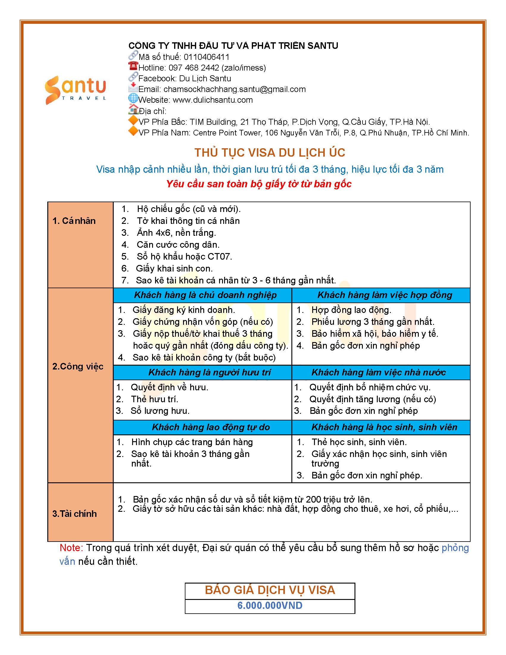 Dịch vụ làm visa đi Úc/New zealand trọn gói tại Santu
